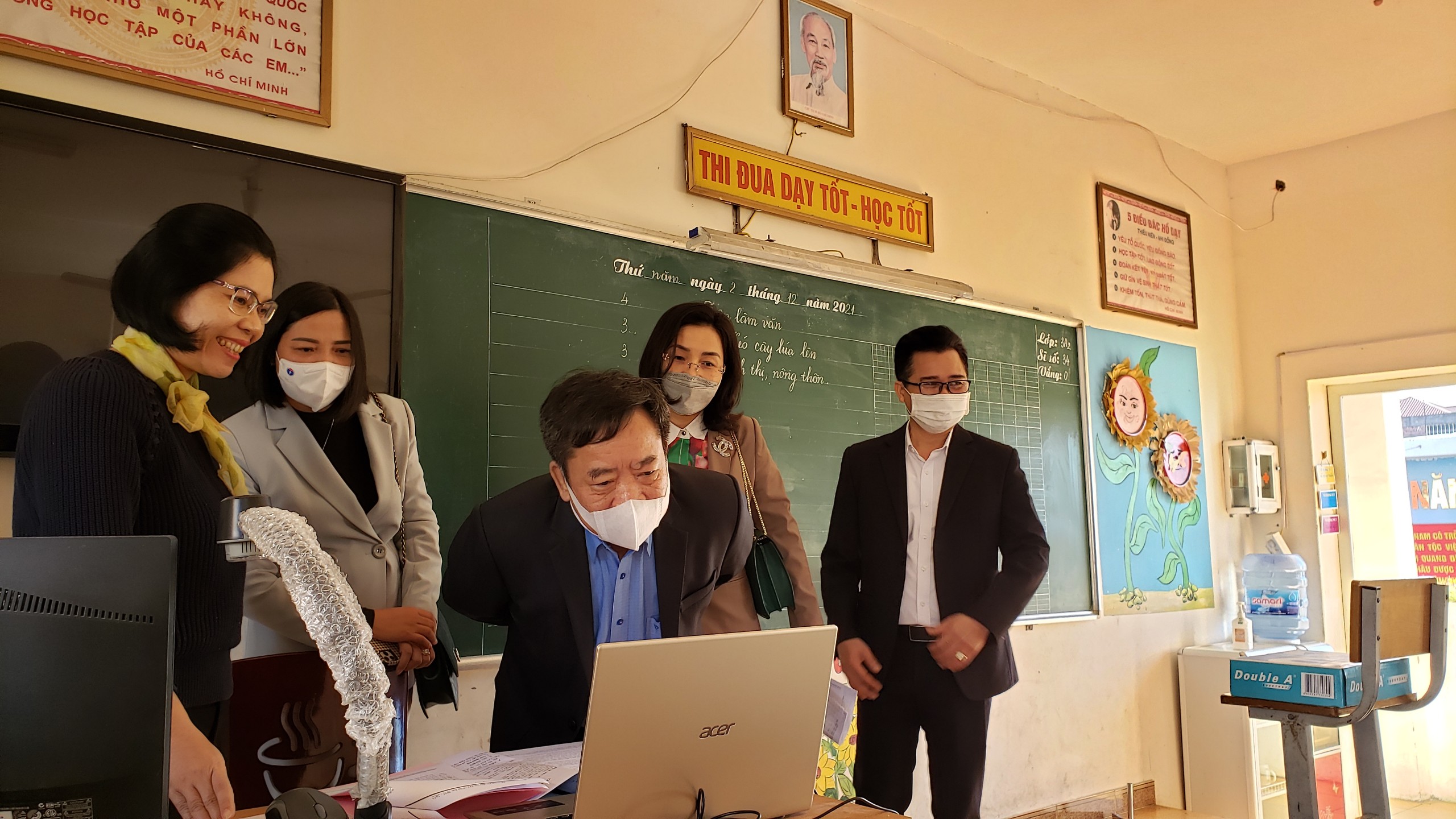 Trên tinh thần dừng đến trường nhưng không dừng học, các đồng chí lãnh đạo Sở GD&ĐT, Phòng GD&ĐT kiểm tra công tác phòng chống dịch Covid-19 và dạy học trực tuyến của nhà trường. Các đồng chí lãnh đạo đã động viên thầy, trò nhà trường khắc phục khó khăn để thực hiện tốt nhiệm vụ và nhắn nhủ tới lãnh đạo nhà trường hãy luôn quan tâm, động viên các thầy cô giáo vì việc dạy học trực tuyến vô cùng vất vả!