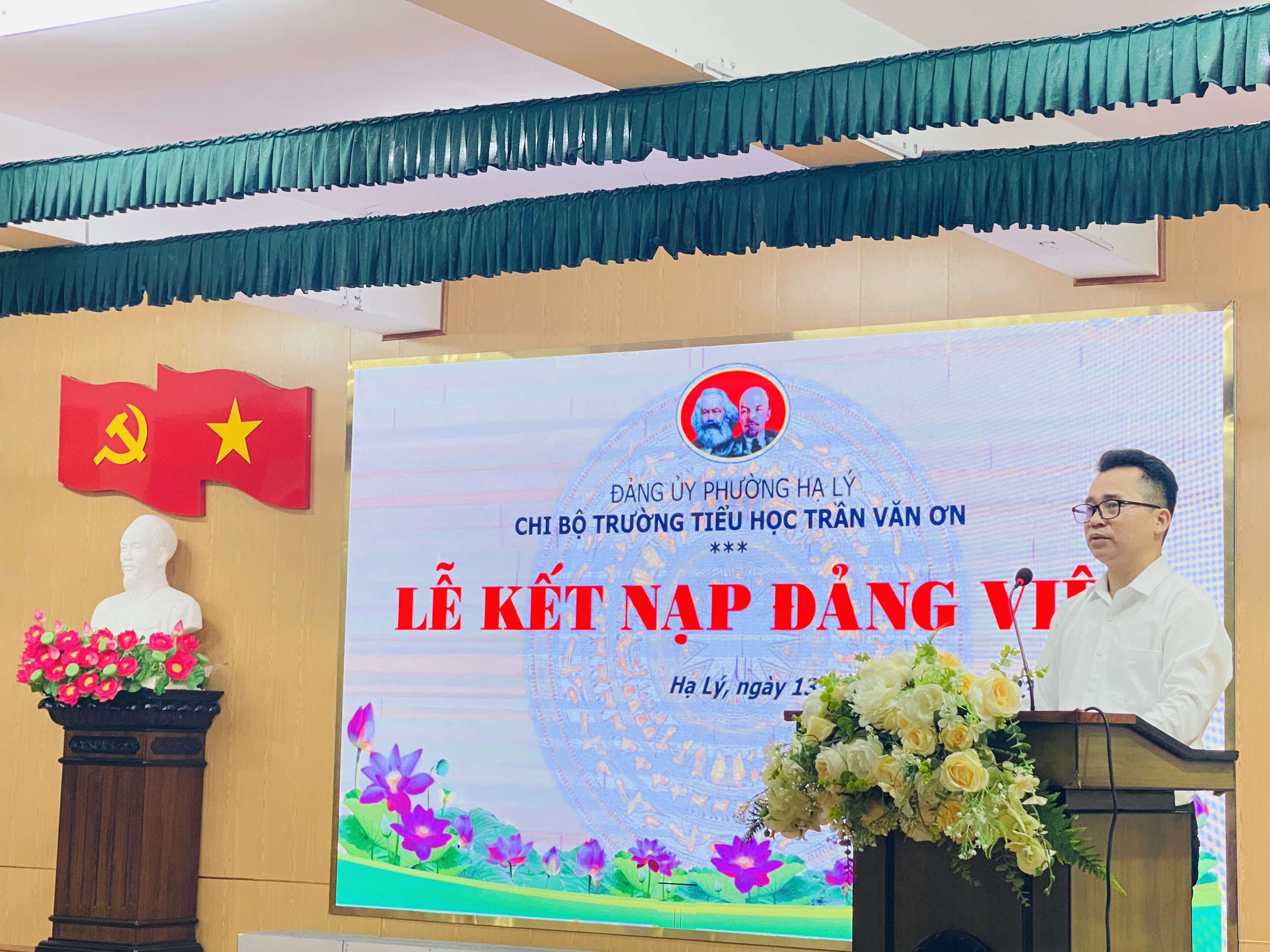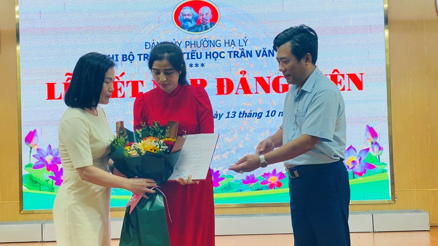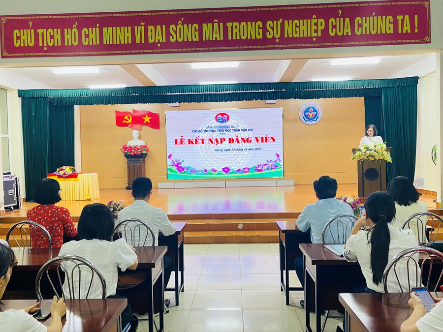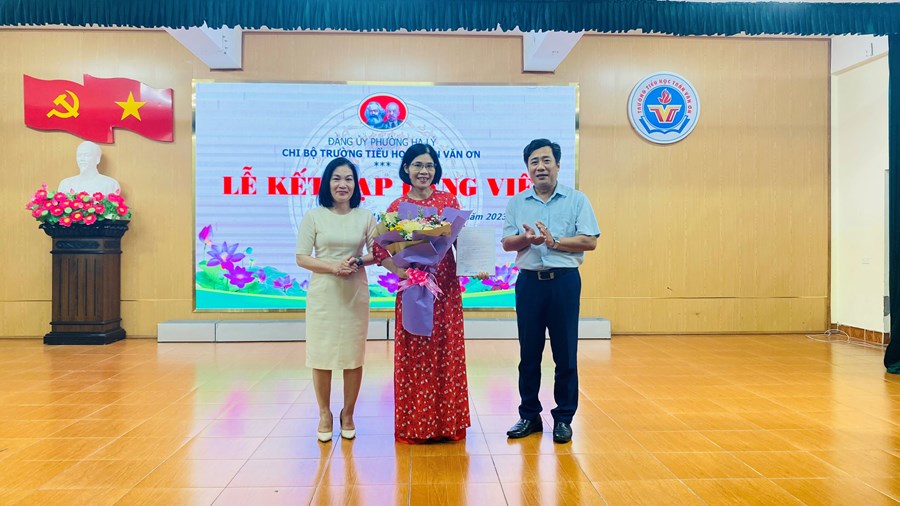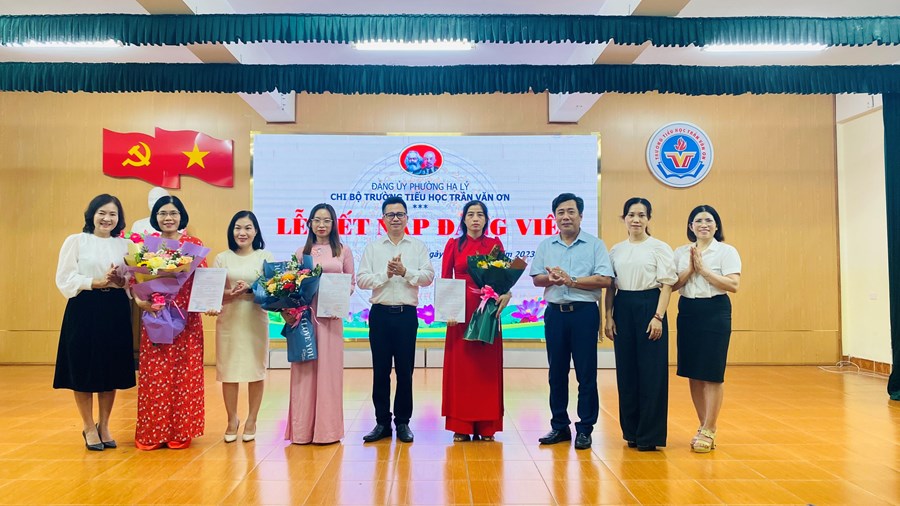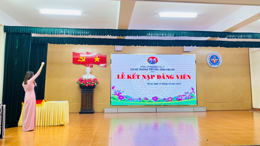 Hôm nay, ngày 13 tháng 10 năm 2023, Chi bộ trường Tiểu học Trần Văn Ơn tổ chức lễ kết nạp Đảng viên cho quần chúng Nguyễn Thị Bách, Nguyễn Thị Nhinh và Nguyễn Thị Thanh Huyền theo quyết định của Ban thường vụ Quận uỷ Hồng Bàng.