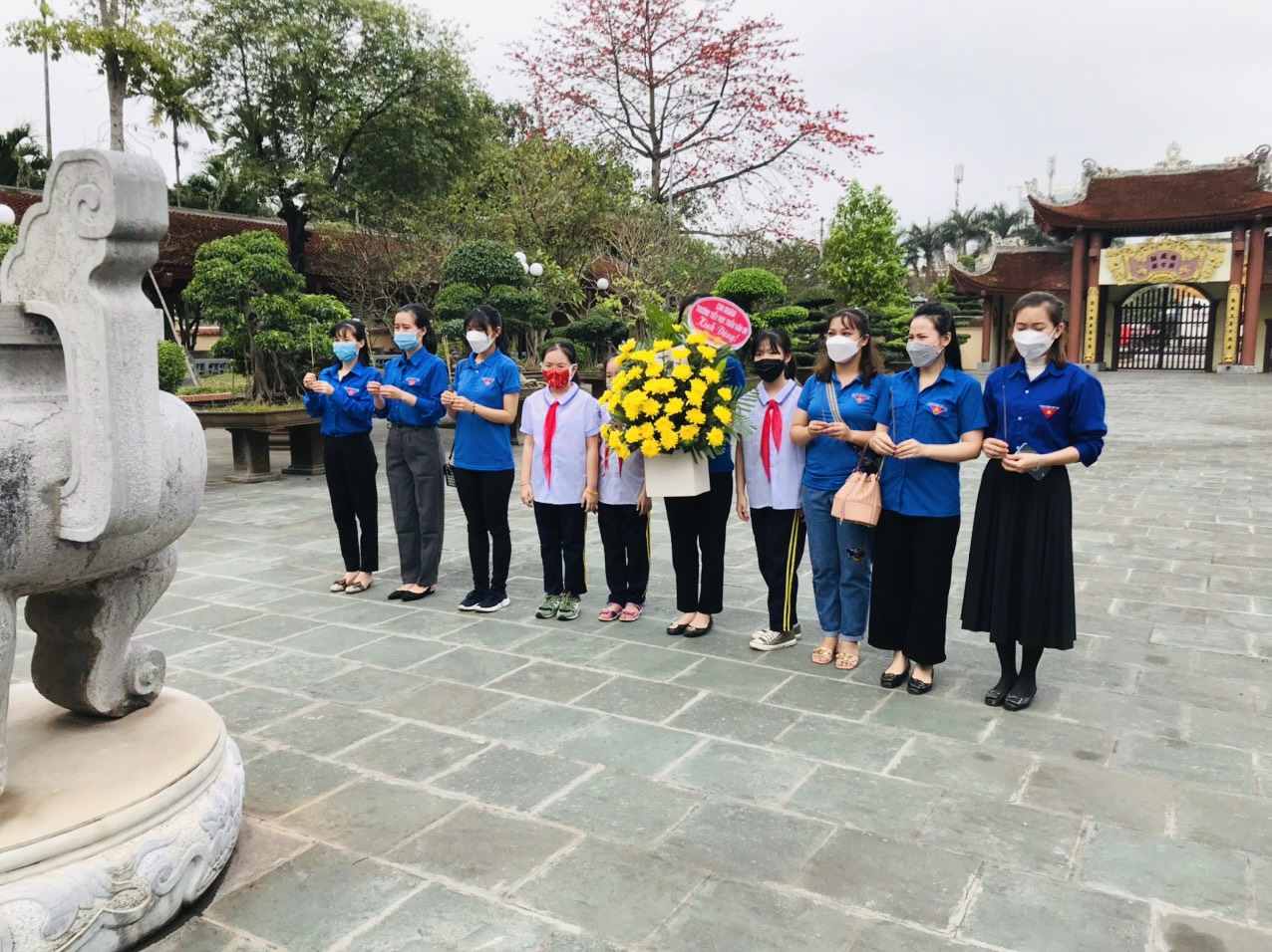 khối 3,4 tổng 105 em. Buổi chiều Chi đoàn làm lễ dâng hương tại Đền liệt sĩ quận