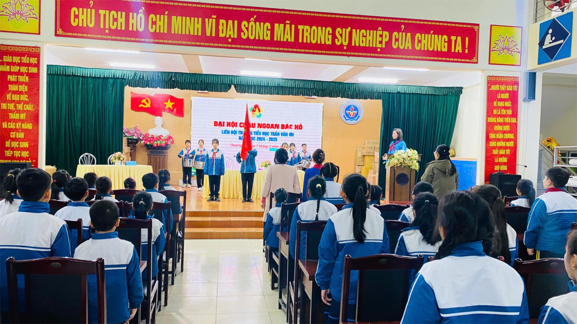 Đại hội Cháu ngoan Bác Hồ liên đội trường Tiểu học Trần Văn Ơn năm học 2024-2025 nhằm tuyên dương đội viên, thiếu niên, nhi đồng có thành tích xuất sắc, tiêu biểu trong thực