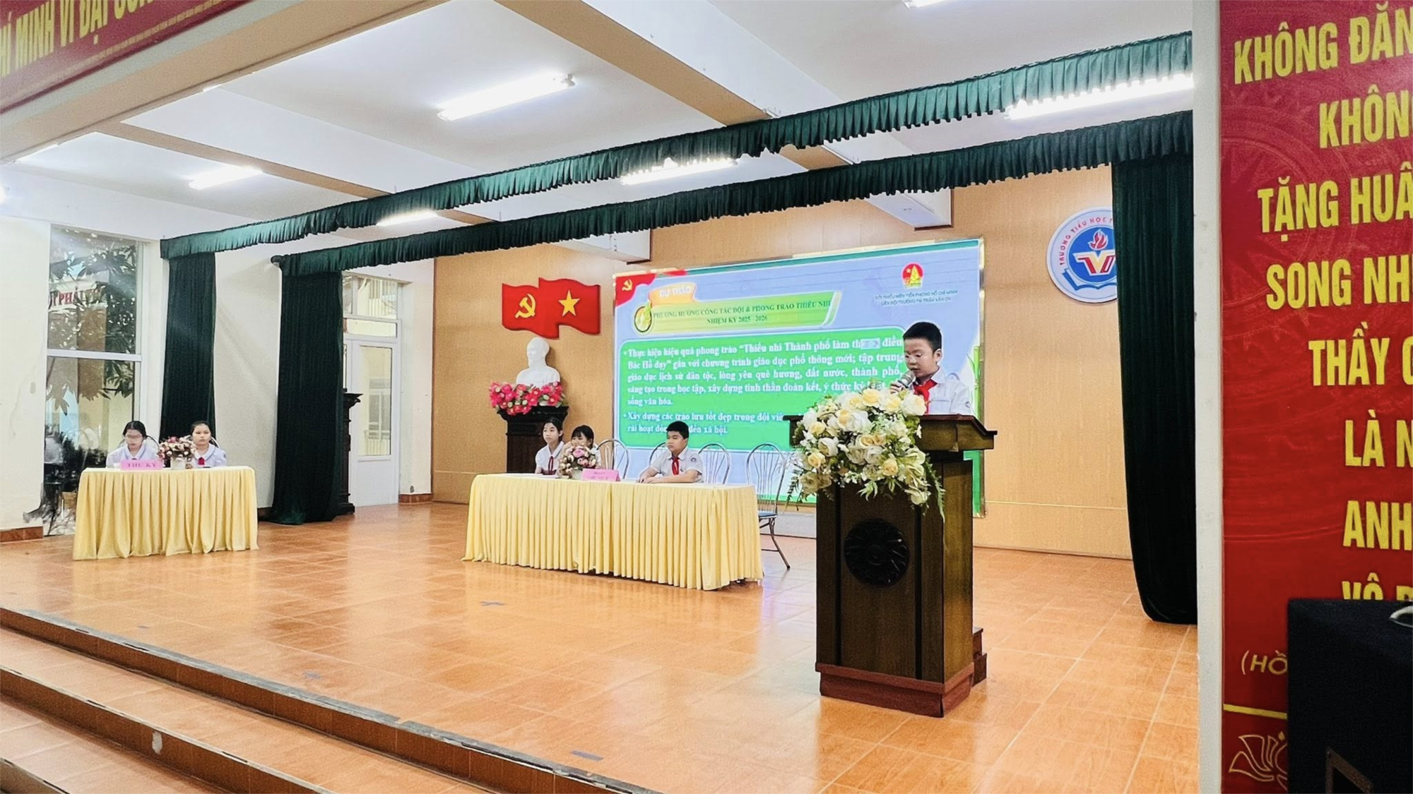 Không khí Đại hội diễn ra trang nghiêm, vui tươi và đầy nhiệt huyết, thể hiện tinh thần đoàn kết, sáng tạo của tuổi thơ Trần Văn Ơn.
