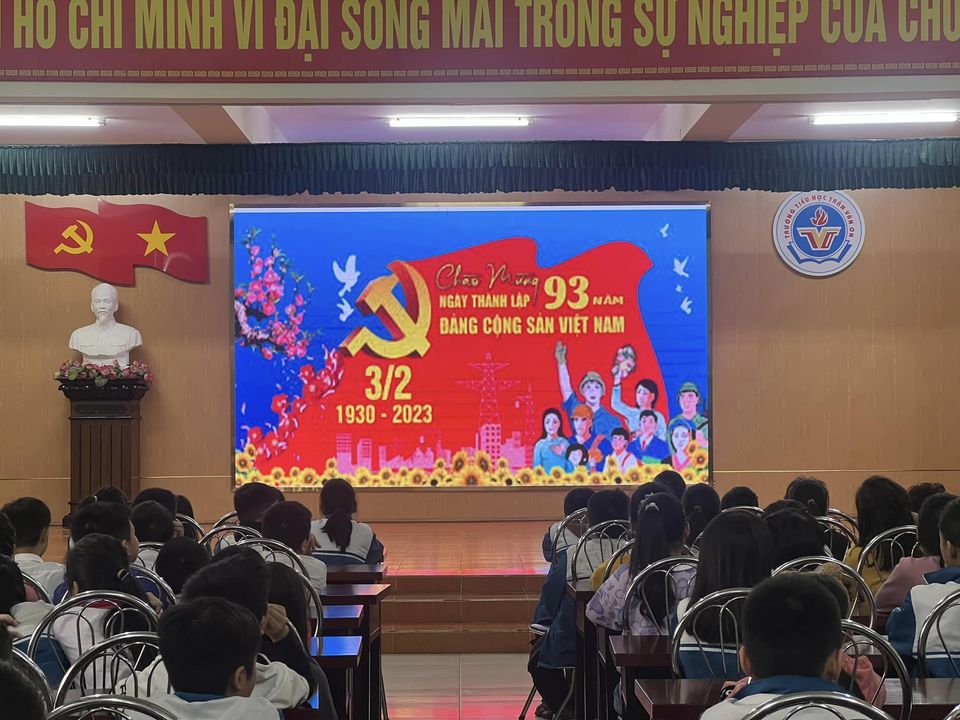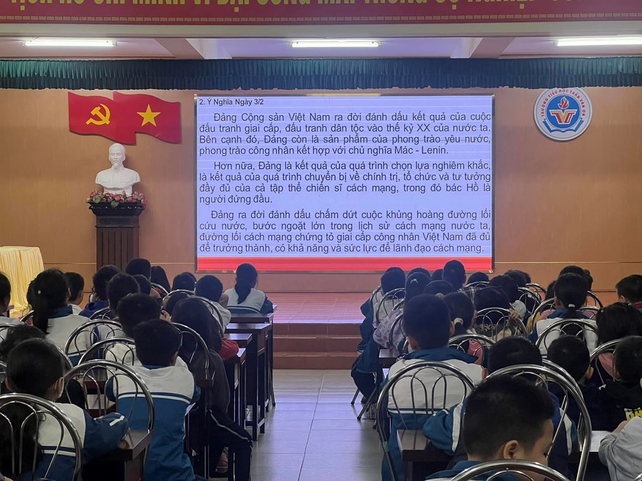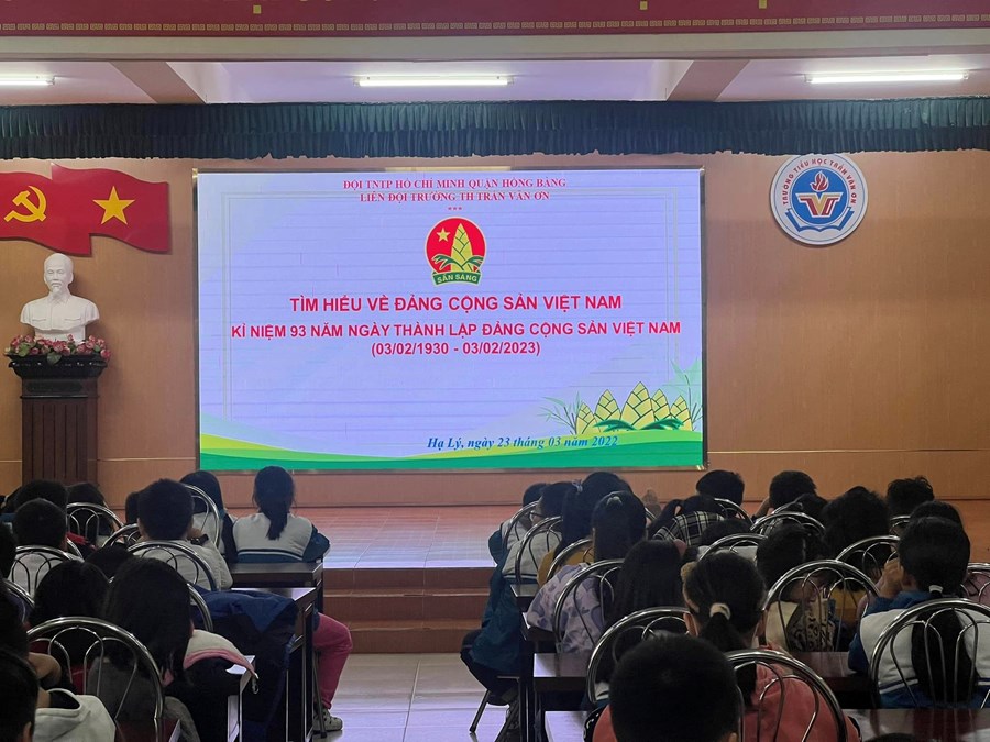 Ngày 03/02/2023 kết hợp các tổ chuyên môn xây dựng tiết học Hoạt động trải nghiệm cho HS, nhân kỉ niệm 93 năm ngày thành lập ĐCS Việt Nam (3/2/1930-3/2/2023) Liên đội trường Tiểu học Trần Văn Ơn tổ chức cho em tìm hiểu về ý nghĩa, hoàn cảnh ra đời Đảng cộng sản Việt Nam qua đó giúp các em hiểu về lịch sử vẻ vang của dân tộc Việt Nam trong sự nghiệp đấu tranh và giải phóng dân tộc.