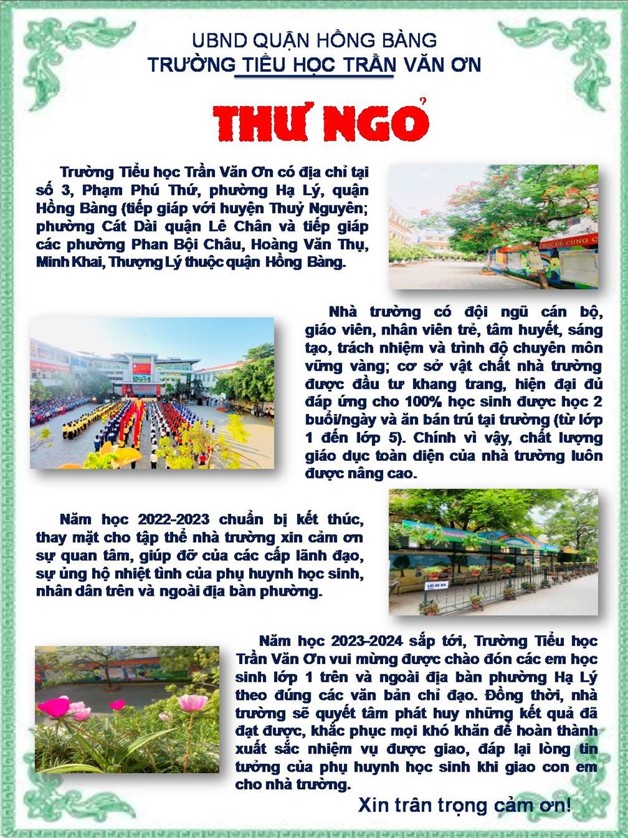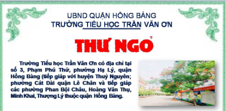 CHÀO MỪNG ĐẾN VỚI TRANG WEB TRƯỜNG TIỂU HỌC TRẦN VĂN ƠN - HỒNG BÀNG - HẢI PHÒNG