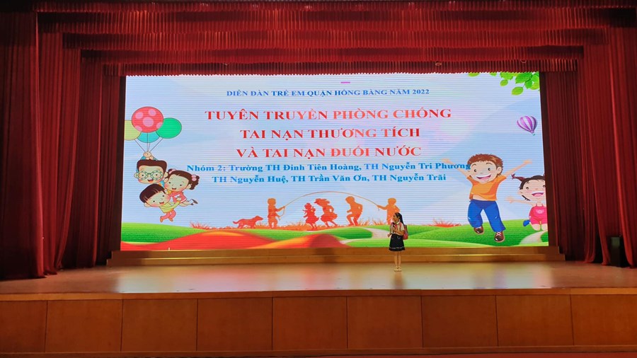 Sáng ngày 15/9/2022, HS trường TH Trần Văn Ơn cùng với các trường Tiểu học: Đinh Tiên Hoàng,Nguyễn Tri Phương,Nguyễn Huệ,Nguyễn Trãi đã tham gia “Diễn đàn trẻ em năm 2022 - Trẻ em với các vấn đề trẻ em” do UBND quận Hồng Bàng tổ chức với nội dung “Phòng chống tai nạn thương tích “ Diễn đàn đã diễn ra thành công rực rỡ, qua đó các em HS đã được giao lưu học hỏi và hiểu biết thêm những kiến thức về quyền trẻ em về cách phòng chống tai nạn thương tích, bạo lực học đường,an ninh mạng, xâm hại tình dục.