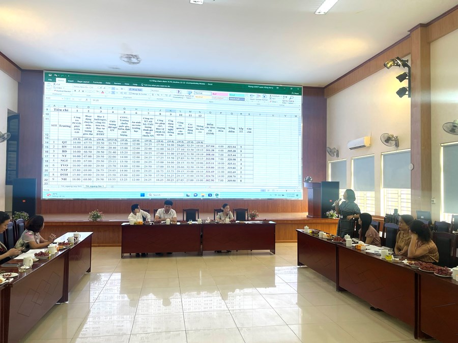 Theo PGD&ĐT Hồng Bàng - Thực hiện nhiệm vụ năm học 2022-2023, ngày 03/07/2023, Phòng Giáo dục và Đào tạo tổ chức Hội nghị bình xét thi đua khối Tiểu học.