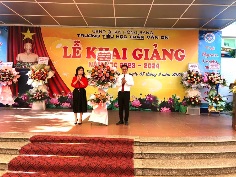 Bác Dương Đức Hoàn - Quận ủy viên - Phó Chủ tịch UBND quận đã đánh hồi trống khai trường. Bước vào năm học mới 2023-2024, tập thể cán bộ, giáo viên và học sinh toàn trường tiếp tục đẩy mạnh các giải pháp nâng cao chất lượng giáo dục, thi dua dạy tốt, học tốt. Chú trọng việc phát triển năng lực, phẩm chất của người học, tạo môi trường giáo dục tốt để học sinh thực sự được học tập trong ngôi trường hạnh phúc, mỗi ngày đến trường là một ngày vui của các em./.