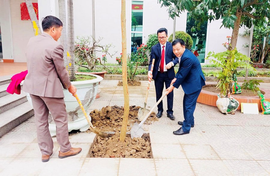 - Sau dự giờ, thăm lớp, trao đổi kinh nghiệm, các thầy cô đã trồng cây lưu niệm tại sân trường. Đặc biệt, các thầy cô còn hướng dẫn học sinh chơi các trò dân gian như ném còn...